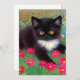 Karte mit einer Gustav Klimt tuxedo Katze! Dieses hübsche Schwarz-Weiß-Kätzchen liegt in einem Bereich mit roten, blauen, weißen und orangefarbenen Blume. Ein phantastisches Geschenk für Katzenliebhaber und österreichische Kunstliebhaber!