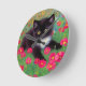 Uhr mit Gustav Klimt tuxedo Katze! Dieses hübsche Schwarz-Weiß-Kätzchen liegt in einem Bereich mit roten, blauen, weißen und orangefarbenen Blume. Ein phantastisches Geschenk für Katzenliebhaber und österreichische Kunstliebhaber!