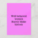 Gut benommen Frauen machen selten Geschichte rosa Postkarte