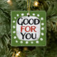 "Good For You" ist ein lustiges Textdesign mit weißer Akzent-Form, umgeben von weißen, weißlichen, weißlichen, weißlichen Texturen.