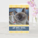 Holen Sie sich bald gut Grußkarte für Mama / Mutter. Eine süße Siamkatze ist in einem Wäschekorb, nicht so gut Gefühl. Ein Thermometer weist auf ein hohes Fieber und Erholung und Flüssigkeiten benötigt werden. Genießen Sie dieses süße feline Foto auf einem gelben karierten Hintergrund. Bild und Vers Copyright © Shoaff Ballanger Studios.