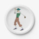 Ein gut gekleideter Golfer, der einen Club schwingt. Dieses Design wirkt auf diese Paper-Teller sehr effektiv