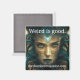 Seltsame, surreale Frau mit der Beschriftung "Seltsam ist gut".