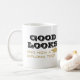 Gut aussieht und jetzt ein Diplom zu lustigen Abschluss Tasse. Ein lustiges Zitat für einen Absolventen - Gut aussieht und jetzt auch ein Diplom. Goldene Graduierungskappe und Typografie. Großartiges Geschenk für einen Absolventen, der seinen Abschluss gemacht hat.