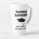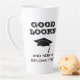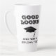 Gut aussieht und jetzt ein Diplom zu lustigen Abschluss Latte Tasse. Ein lustiges Zitat für einen Absolventen - Gut aussieht und jetzt auch ein Diplom. Graduationskappe und Typografie. Großartiges Geschenk für einen Absolventen, der seinen Abschluss gemacht hat.