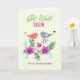 Fügen Sie den Namen Ihrer Urgroßmutter auf das Cover dieser Get Well, Paper Grußkarte. Illustration von Blume mit zwei Vögeln auf Zweigen. Art, Bild und Vers Copyright © Shoaff Ballanger Studios, 2024.