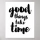 Gute Dinge brauchen Zeit, ein großartiges inspirierendes Zitat, an das man sich erinnern kann. Vollständig anpassbare Farbe.