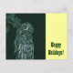 Happy Holidays Postcard. Große Grauschüssel oder Lapplandschüssel (Strix nebulosa), sehr große Eule, verteilt über die nördliche Hemisphäre. Diese Karte kann durch Hinzufügen eines eigenen Textes angepasst werden.