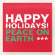 Es ist rot mit weißer und grüner Typografie. Es gibt drei stilisierte Schneeflocken und eine Stimmung, die sagt "Happy Holidays! Weltfrieden." Dieser wunderschöne Untersetzer wird Ihrem Schreibtisch oder dem Schreibtisch eines beliebten Mitarbeiters ein wenig Lustigkeit und Urlaubskraft verleihen. Kaufen Sie mehrere und teilen!