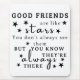 "Gute Freunde sind wie Sterne. Man sieht sie nicht immer, aber man weiß, dass sie immer da sind."Dieses Design erfasst das Wesen dauerhafter Freundschaft, indem es die Analogie von Sternen nutzt, um die unerschütterliche Gegenwart guter Freunde zu veranschaulichen. Es ist eine Erinnerung, dass wahre Freunde immer da sind und Unterstützung und Komfort bieten, auch wenn Distanz oder Umstände einen auseinander behalten haben. Dieses Zitat findet bei jedem Anklang, der die dauerhafte Bindung mit ihren nächsten Freunden pflegt.
