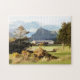 Eine Aquarell eines walisischen Bauernhofs und einer Berglandschaft. Bird Rock (Craig yr Aderyn) im Vordergrund mit Cader Idris im Hintergrund.