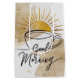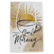 Guten Morgen, dieses Design bietet eine schöne goldene Sonne und Sonnenstrahlen mit einer Tasse Kaffee und Text-Sprichwort, "Guten Morgen".