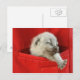 Graues Kätzchen streckt sich nach einem Nickerchen in einem Tasche Foto Postkarte