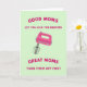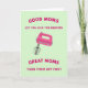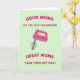 Entworfen mit einem modernen Küchenthema, zeigt die Karte einen Handmixer in strahlendem Elektrorosa, schräg gestellt, als ob mitten im Backen. Dahinter hält ein sanfter pastellgrüner Hintergrund die Szene ruhig und lässt das Rosa hervorstechen, wie einen süßen kleinen Moment, den man beim Dessert teilt ❤️. Oben steht in abgerundeter Fuchsia-Schrift: „GOOD MOMS LET YOU LICK THE BEATERS“ (Gute Mütter lassen dich die Rührbesen ablecken), was dem Design einen sanft neckenden, liebevollen Ton gibt. Unten antwortet passender Fuchsia-Text mit: „GREAT MOMS TURN THEM OFF FIRST“ (Großartige Mütter schalten sie zuerst aus), was eine fürsorgliche, wachsamen Note hinzufügt, die sich wie ein wissender Blick von einem Elternteil anfühlt 👩. Die Schneebesenaufsätze des Mixers sind deutlich zu sehen, mit glatter Schattierung,