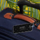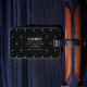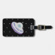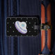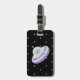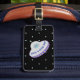 Gepäckanhänger mit einer fliegenden Untertasse und Text "Have a Good Trip", der personalisiert sein kann. Diese fliegende Untertasse ist auf schwarzem Hintergrund mit Sternmuster. Mit diesem attraktiven Gepäckanhänger der nächsten Generation heben Sie sich von der Masse ab.