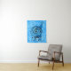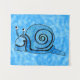 Dieser Wandteppich ist ein abstrakter Mix aus Blues mit Puffs von leichterer Blues mit einer lustigen, fröhlichen Schnecke mit großen weißen Augen, die eine schwarz umrissene Muschel in den Tönen der hellen Blues hat.