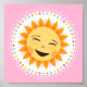 Niedliches Poster für Mädchen mit einer Cartoon-Illustration eines lachenden, fröhlichen Sonnenlichts in einem farbenfrohen Polka Dot Rand.