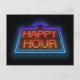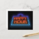 Digitales Kunstwerk, das ein beleuchtetes neonisches Happy Hour Schild darstellt.