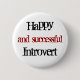 Ein weißes Button auf Knopfdruck mit "Happy and Success Introvert" für eine positive Aussage.