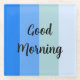 Coole blaue und hellgrüne Streifen Muster und ein individualisierbares Sprichwort: Guten Morgen. Geeignet für einen fröhlichen marinen Stil.