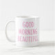 gute morgendliche schöne Tasse ist eine niedliche Tasse für jeden, der nicht morgens ist oder einfach nur ein bisschen ruhige Zeit braucht. Es hat einen rosa lässigen Text und die Worte "Guten Morgen schön" geschrieben für den, den Sie Liebe.