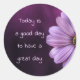 Ein nahes Foto einer lila Blume und ein inspirierendes Zitat: "Heute ist ein guter Tag für einen schönen Tag"