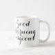 Sagen Sie Ihrem herrlichen guten Morgen mit dieser freundlichen Tasse im einfachen Schwarzweiss-Skript.
