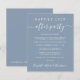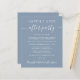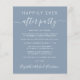 Günstige staubblaue Räumlichkeiten oder private Hochzeitsankündigung und Hochzeitsempfang. Die Vorderseite zeigt "Happily Ever After Party" in einer Mischung aus weißer Typografie und einem zeitgenössischen weißen Skript mit Swashes. Sie können Ihre Nachricht und Einladung personalisieren und Ihre Namen in einem signaturähnlichen Skript hinzufügen. Auf der Rückseite finden Sie Ihre Vornamen und das Hochzeitstermin.