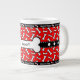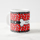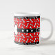 Gutes Hundehündchen entbeint buntes Rotes und Jumbo-Tasse