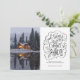 Eine ruhige Naturlandschaft mit Hütte im Wald und Schriftzypografie gute Zeichen des Komforts und der Freude. Diese Urlaubskarte unterstreicht die Wünsche für einen gesunden und glücklichen Urlaub. Ein eleganter, moderner Naturstil für den Urlaub. Sie können dieses schöne Foto benutzen oder Ihr eigenes Foto Ihrer Kabine oder Familiengruppe hochladen.