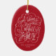 Elegante, handgeschriebene Ornamente mit dem Satz "Gute Dinge für Komfort und Freude" und dekorative Akzente in Weiß vor dunkelrotem Hintergrund. Personalisieren Sie die Vorderseite des Ornaments, indem Sie Ihren Namen und das Jahr hinzufügen. Fügen Sie Ihr Lieblings-Foto auf der Rückseite für ein individuelles Design!