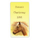 Sie können den Text auf den Etiketten der weißen Weinflaschen leicht anpassen, die mit einem schönen goldbraunen Pferd versehen sind, das von der gelben Sonne beleuchtet wird.