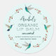 Dieses hübsche, individuell anpassbare Produktetikett zeichnet sich durch einen Aquarellkranz von Kolibris und botanische Äste auf hellblauem Hintergrund aus. Die Größe des Schriftartes und der Stil des Schriftartes können Sie ändern, indem Sie auf "Bearbeiten mit dem Entwurfswerkzeug" klicken. Alle Hummingvogelbilder werden von C. Dobbins aus originalen Aquarellen aufgenommen.