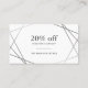 Modern Chic Minimalistisch Trendy Silver Geometric Muster Dunkle graue Typografie Social Media Discount Coupon Card Vorlage Es ist einfach anzupassen! Editierbar und anpassbar! Ideal für viele visuelle kreative Spitzenberufe, die Veranstaltungsplaner, Hochzeitsplaner, Berater, Stylist, Designer, MakeUp Artists, Salon und Creative Professionals suchen. Auch geeignet für andere Berufe Designer, Innendekorator, Kostenformator, Projektleiter, Public Relations Consultant, Schulberater Berufstherapeut, Zahnarzt, Apotheker, Psychologen, Psychiater, Buchhalter, Steuerberater, Finanzberater, Real Anwesen Agent, Rechtsanwalt, Rechtsanwalt, Rechtsanwalt, Paralegal, Kleidergeschäft Owner, Beruflich, Software / Web Developer, Programmierer, Chiropractor, Computer Analyst, Datenbank Administrator, Cleaner, Veterinär, Interpreter & Translator, Vertriebsmitarbeiter, Sozialarbeiter und viele andere Fachleute. (Silver NOT-Folie, ein Bild)