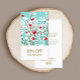 Einfache Zweige mit Rot-Weiß-Beeren mit Blätter auf aqua-blauem Hintergrund.