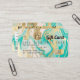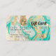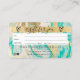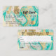 Eine elegante, moderne, stilvolle Schönheitssalon-Kunsthalle im Stil einer Kreditkarte mit Schminkfiguren und einer modernen Schrift-Schriftart-Typografie auf einem schicken Gold, türkisfarbenem Marmorgeode und vergoldetem metallischem Hintergrund. Mit Imitaten goldener Streifen. Fügen Sie Ihr Logo, Ihr Monogramm und Ihren QR-Code hinzu.