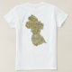 Die Vorderseite dieses T - Shirt zeigt mutig die Flagge von Guyana mit ihrem charakteristischen, schwarzen, fimbrierten roten Dreieck auf einem weißen, fimbrierten, gelben Dreieck auf grünem Hintergrund. Hinter dem Bild befindet sich eine attraktive Karte von Guyana.