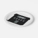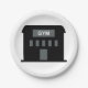 Ein ganz in Schwarz gehaltenes Fitnessstudio mit dem Wort Gymnastik. Dieses Design wirkt auf diese Paper-Teller sehr effektiv