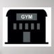 Ein ganz in Schwarz gehaltenes Fitnessstudio mit dem Wort Gymnastik. Dieses Design sieht wirklich effektiv aus auf diesem Poster