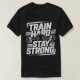 Mit unserem "Gym T - Shirt Train Hard Bleibe Strong" Design können Sie Ihren Workout-Kleiderschrank ausbauen. Dieses Shirt ist ideal für Fitnessen, die sich dafür einsetzen, ihre Grenzen zu überschreiten und stark bleibe. Aus hochwertigem, atmungsaktivem Material gefertigt, garantiert es maximalen Komfort während intensiver Trainings. Der fett motivierend "Train Hard Bleibe Strong"-Druck inspiriere nicht nur Ihnen, sondern macht auch eine Aussage im Fitnessraum. Egal, ob Sie Gewichte heben, laufen oder Yoga machen, dieser T - Shirt ist Ihr idealer Trainingsbegleiter. Holen Sie sich heute und zeigen Sie der Welt Ihr Engagement für Fitness und Kraft!