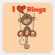 Ein Strichmännchen-Affen-Gymnast auf den Ringen und Text, der "I (Herz) Rings" auf gymnastischen Design-T - Shirt, Hoodies, Tasse, Karten, Aufkleber, Tote-Taschen, und andere Gymnastik-Bekleidung und Geschenke.