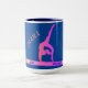 Gymnastik zwei tönige Kaffee-Tasse mit Gymnast auf einem Balancestrahl mit personalisiertem Namen.