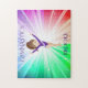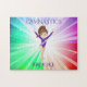 Schönes lichtfarbenes Puzzle mit Gymnast in lila. Personalisierter Name.