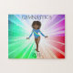 Schönes lichtfarbenes Puzzle mit Gymnast in lila. Personalisierter Name.