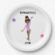 GYMNASTICS PARTY PAPIERTELLER MIT PERSONALISIERTEM NAMEN FÜR MÄDCHEN.