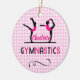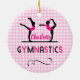 Niedliches Design für Liebe Gymnastikgymnasisten, die ihre Übungen auf dem Balancestrahl und extravagantes "Gymnastik" Set auf einem hübschen rosa-weißen Gingham karierten Muster machen und so einfach mit einem persönlichen Namen für diese besondere Touch anpassen.