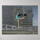 Gymnastik im Freien auf dem Dach, die in die Luft Poster