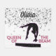 Ein wunderschönes Design, beladen mit Silberstern, eine Turnerin auf Strahl, die blendet, während sie ihre Backspring Step-out-Fertigkeit macht, sagt "Königin der Beam" in einer zweifarbigen rosa Blase wie Schriftart und das Beste von allem ist mit dem Namen Ihres Turniers personalisiert!