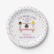 Dreh, Tumble, Jump and Play! Gymnastik Geburtstagsparty Teller in Rosa, lila und blau Pastellfarben.