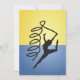 In der Gymnastik ist das Band auf dem Boden eine großartige Handlung. Dieses Design ist eine Gymnastikbodenroutine. Der Gymnast ist auf dem Boden in einem Sprung mit dem Band in einem schönen wirbelnden Muster. Diese Gymnastik Bändchen-Routine sieht auf diesen Einladungen großartig aus